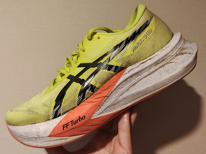 マジックスピード2(950km使用)、マジックスピード3(800km使用)も同じアウトソールですが、アシックスグリップはまだ力を発揮してくれています。