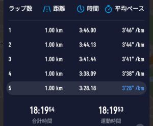 ラスト1キロも全力を出し切らずに3’30/kmを切ることができたので調子は悪くないと思います。