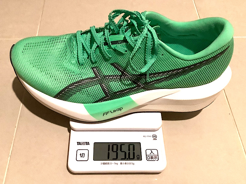 マジックスピード5の片足重量は195.0g(26.5cm)でした。 ※個体差はあります